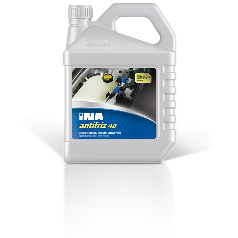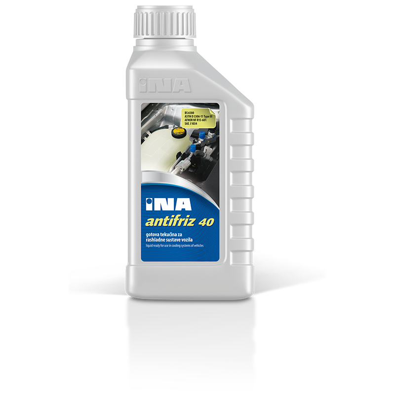 INA Antifriz 40 je gotova rashladna tekućina na bazi etilen-glikola s odgovarajućim aditivima, namijenjena za izravno punjenje rashladnih sustava motora. Pruža zaštitu od smrzavanja zimi, vrenja ljeti te učinkovitu zaštitu od korozije.